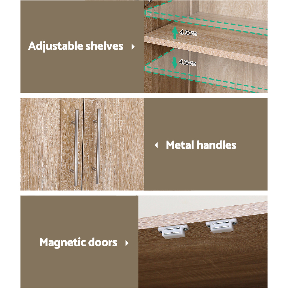 Need more storage space in your kitchen or living room? Our Tall Cupboard from Artiss may just be the solution for you. With four shelves in the cabinet the cabinet provides more than ample space for all your essentials. Plus, the doors have magnetic catches for easy and tight closure; The cabinet can be used as storage in your bathroom, pantry, or bedroom. Mix and match with other pieces for the perfect look!